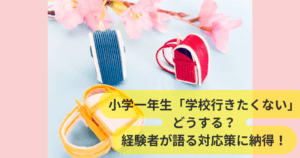 - 小学一年生「学校行きたくない」どうする?経験談×意味づけで見えた解決のヒント小学一年生になったばかりで「学校行きたくない」と言われたら、親としてどう対応すればいいのか、悩んでいませんか?… 続きを読む: 小学一年生「学校行きたくない」どうする?経験談×意味づけで見えた解決のヒント